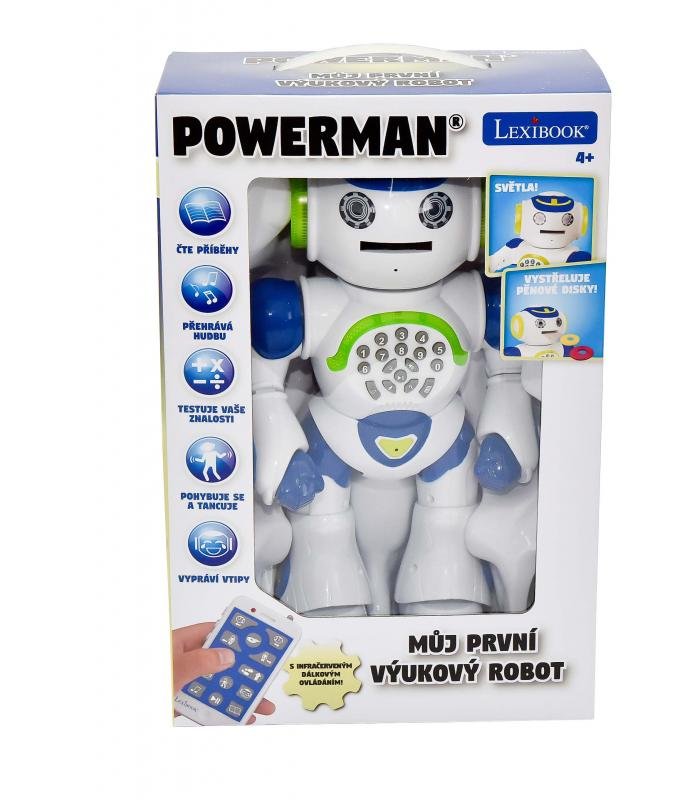 Zábavný a výukový robot Powerman, který dorazil na planetu Zemi z dalekého vesmíru. Robot umí chodit, tančit. Vždy vás rozveselí svými vtipy nebo před spaním řekne bajky. Nebo otestujte základní matematické znalosti. A ještě navíc vystřeluje pěnové d