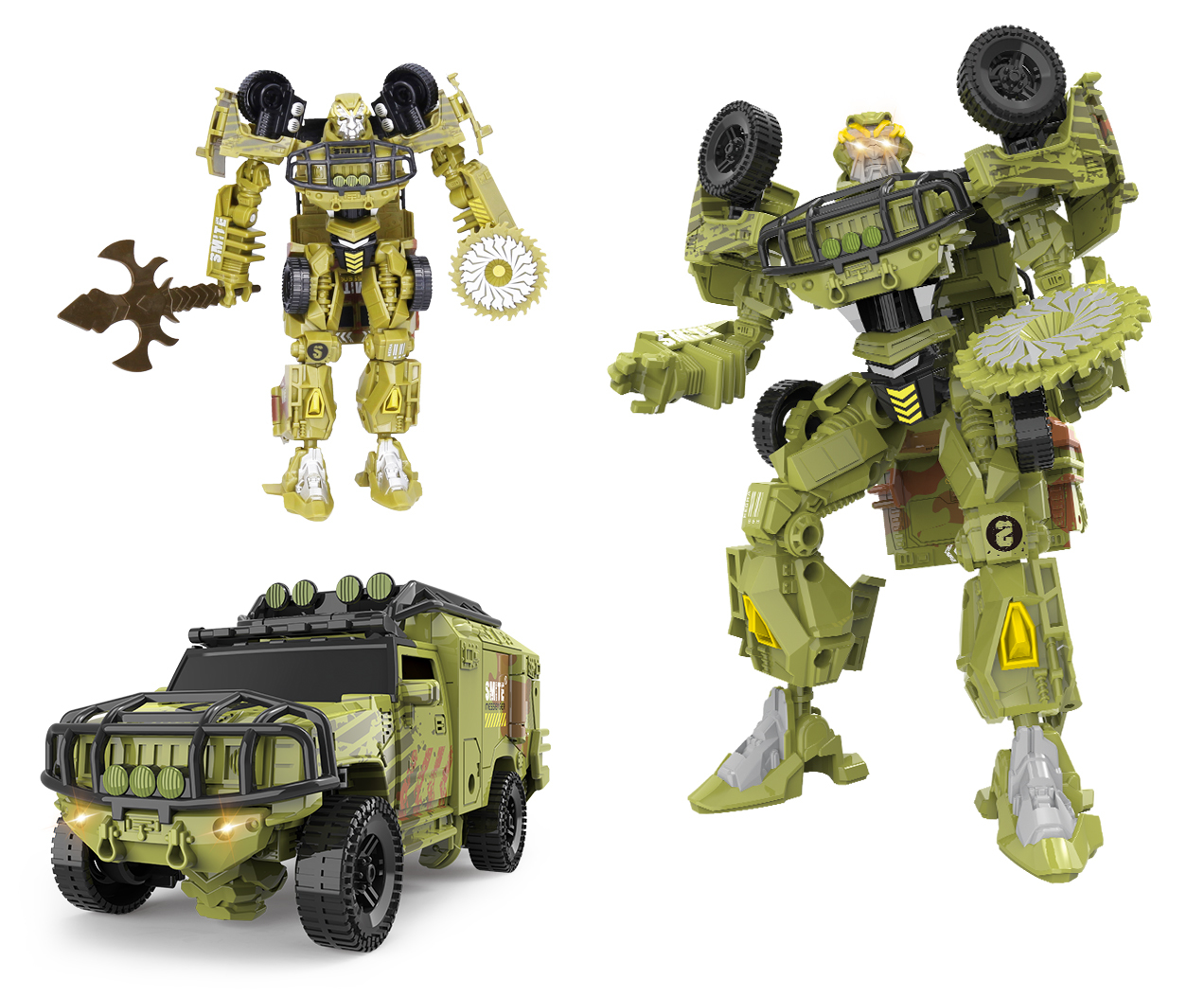 Autorobot. Velikost 17 cm. Transformace na obrněné vozidlo. Balení obsahuje 2 zbraně - meč a pila. Volná kola. číst celé