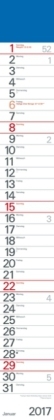 Praktischer Streifenplaner mit Datumsschieber. Abreißkalender. Sonn- und Feiertage in Rot. Kalendarium in deutscher Sprache.