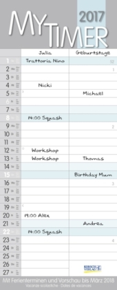 Praktischer Planer mit 2 Spalten, modernen Farben und coolem Design. Inklusive Ferienterminen und Vorschau bis März des Folgejahres. Kalendarium d-e-f-i. číst celé