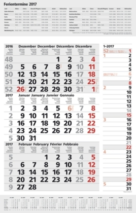 Übersichtlicher 3-Monats-Planer: aktueller Monat sowie Vor- und Nachmonat auf einen Blick. Rechts ist zusätzlich Platz für persönliche Eintragungen. Mit Datumsschieber und Ferienterminen. Kalendarium d-e-f-i. číst celé