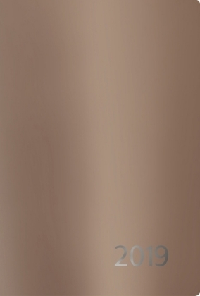 Moderner Buchkalender mit kupferfarbenem Einband. Umschlag mit Metallic-Faben bedruckt. Pro Woche 1 Doppelseite. Mit deutschem Kalendarium und Jahresplaner für 2019 und 2020.