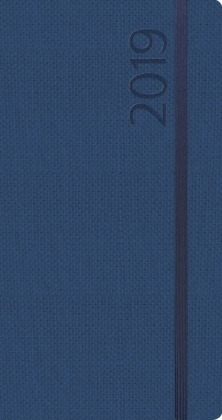 Moderner Buchkalender mit dunkelblauem Einband. Umschlag aus edlem Strukturpapier. Pro Woche 1 Doppelseite. Mit deutschem Kalendarium und Jahresplaner für 2019 und 2020. číst celé