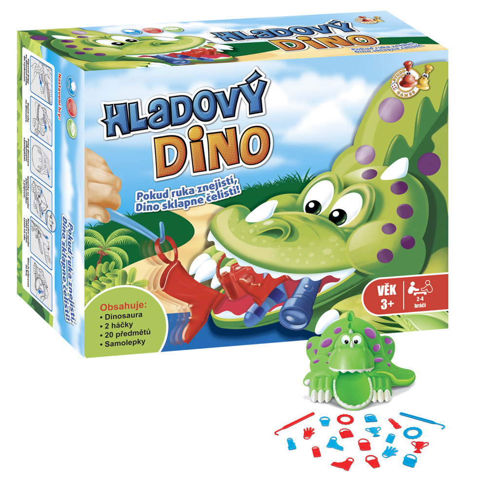 Dinosaurus má plnou pusu věcí, které musíš opatrně vyndat pomocí háčku. Hra končí pokud se dotkneš jeho zubů a jeho pusa sklapne. - Věk 3+ číst celé