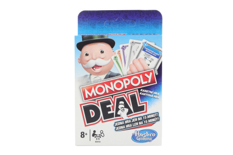 Karetní hra Monopoly přichází v novém vydání a s ještě efektivnějšími pravidly, které vás rychle dostanou do hry. Zahrajte si hru za pouhých 15 minut! Sbírejte nemovitosti a použijte hrací karty, vybírejte nájemné a uzavírejte obchody. Hráč, který shromáždí 3 kompletní sady nemovitostí v různých barvách, vyhrává hru. Obsahuje 110 karet a herní pravidla. Věk 8+