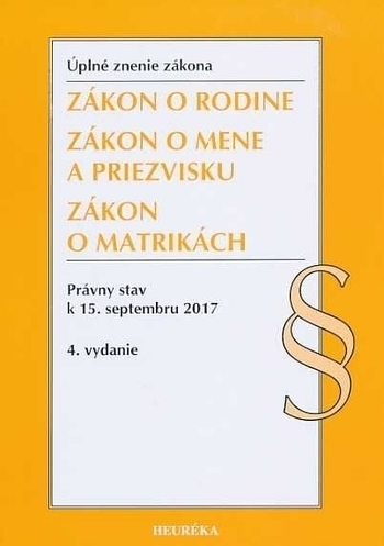 Publikácia obsahuje aktualizované úplné znenie zákonov s právnym stavom k 15. septembru 2017: Zákona č. 36/2005 Z.z. o rodine, Zákona č. 300/1993 Z.z. o mene a priezvisku a Zákona č. 154/1994 Z.z. o matrikách. číst celé