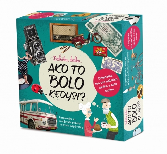 Rozprávajte sa a objavujte príbehy zo života svojej rodiny. Chcete spoznať rodinné príbehy, o ktorých ste ešte nikdy nepočuli? „ Ako to bolo kedysi?“ je nová hra, pri ktorej si babička, dedko, mamička, otecko, ale aj deti a kamaráti príjemne zaspomínajú a dozvedia sa zabudnuté príbehy z rodinnej histórie. Hra obsahuje veľa kariet s retro fotografiami a hravou formou pobáda do rozprávania príbehov. Napadne vám pri pohľade na kartu s fotografiou nejaký zážitok? Spoločne si vypočujete udalosti, o ktorých by ste sa inak možno vôbec nedozvedeli. V hre sa ukrýva takmer nevyčerpateľná studnica rodinných zážitkov. V druhej fáze hry hráči odpovedajú na otázky viažuce sa k príbehom. Počúvali ste pozorne a dokážete správne odpovedať? Ak áno, posúvate sa na hernom pláne. Víťazí ten, kto si všetko najlepšie zapamätal a bude prvý v cieli. Lenže víťazstvo v tejto hre nie je to podstatné. Tým sú zážitky a udalosti, ktoré si vypočujete. A nepochybujte, že veľa príbehov babičky, dedka a všetkých vašich blízkych si navždy uchováte v pamäti ako krásnu spomienku. „Ako to bolo kedysi?“ je unikátna rodinná hra, ktorá spája generácie a zábavnou formou pomáha trénovať pamäť. -Hra je určená pre 2 - 12 hráčov od 6 do 120 rokov -Hra trvá 45 - 90 minút -Hra obsahuje veľký hrací plán, karty s retro fotografiami, karty s otázkami a 12 drevených figúrok