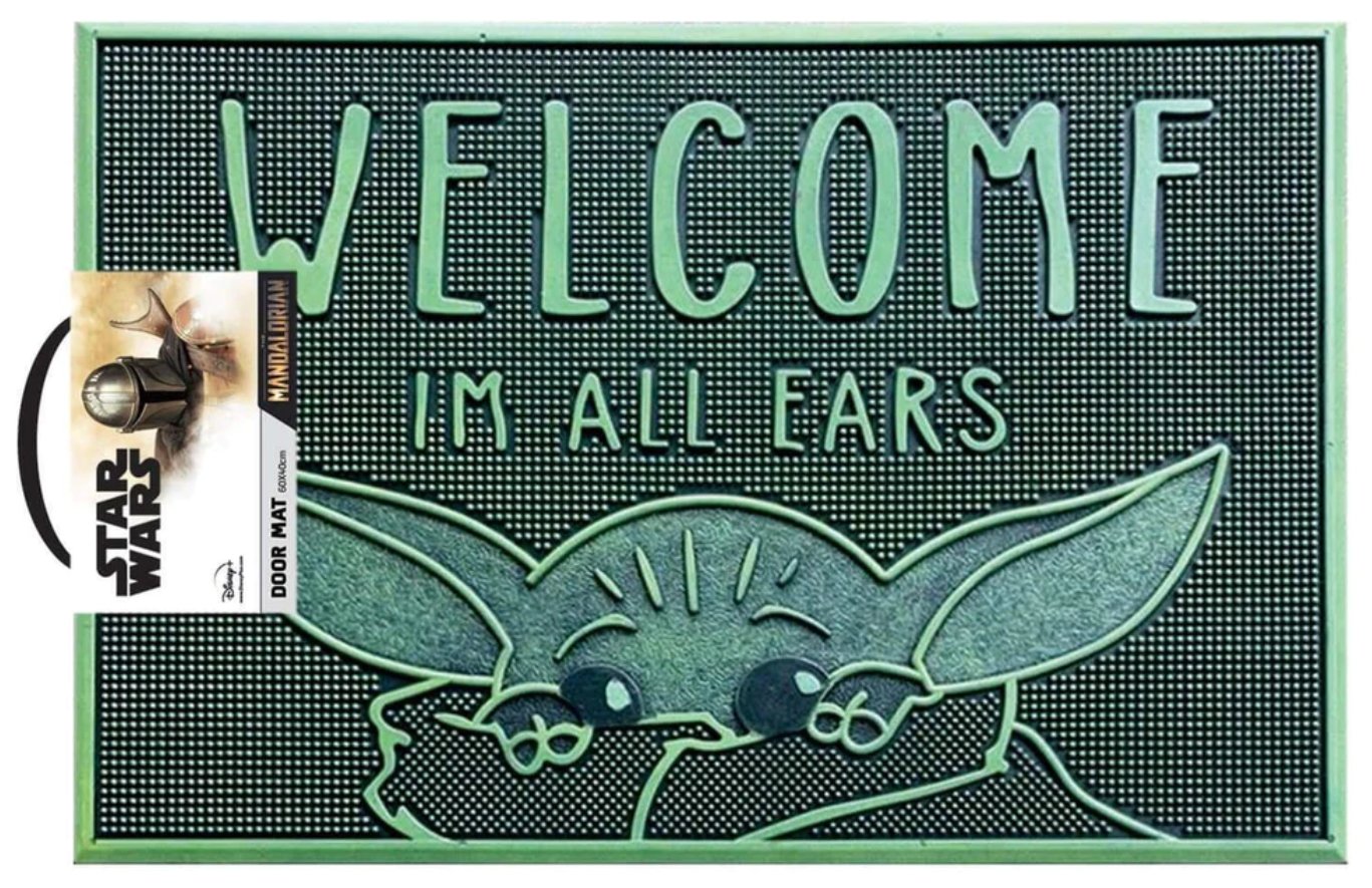 Hezká gumová rohožka s Baby Yodou aka Grogu z oblíbeného sci-fi seriálu The Mandalorian dá každému na vědomí, že vstupuje do příbytku věrného fanouška Star Wars - Hvězdných válek. Na rohožce stojí nápis Welcome I m All Ears - Vítejte, jsem jedno ucho. Materiál: pryž číst celé