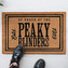 Hnědá rohožka vyvedená v motivu loga seriálu Peaky Blinders.