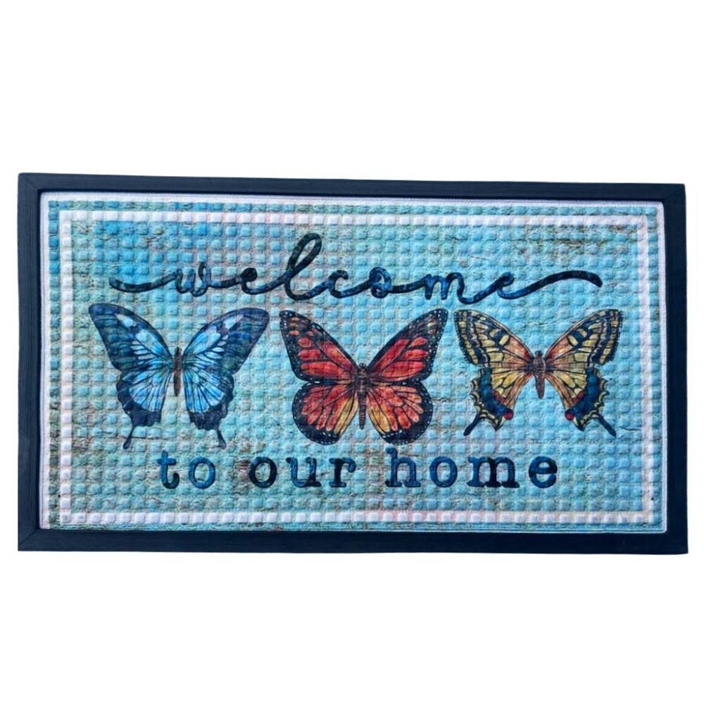 HOME ELEMENTS Rohož gumová + PP, Home motýli, 45x75 cm