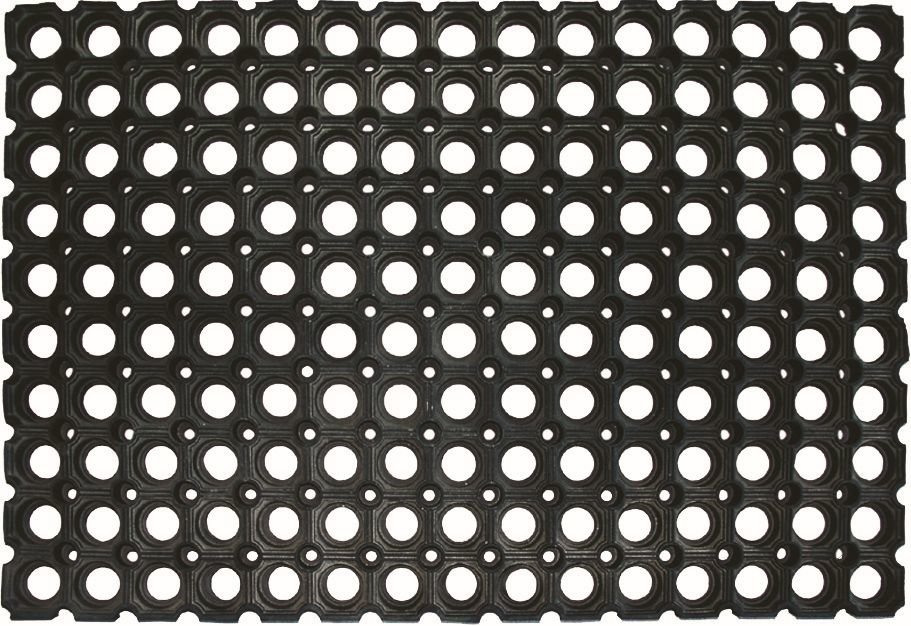 Praktická černá venkovní rohožka před dveře na čištění obuvi. Rohožka je stabilní s kulatými otvory, při čištění obuvi po podlaze neklouže. Jednoduchá údržba. číst celé