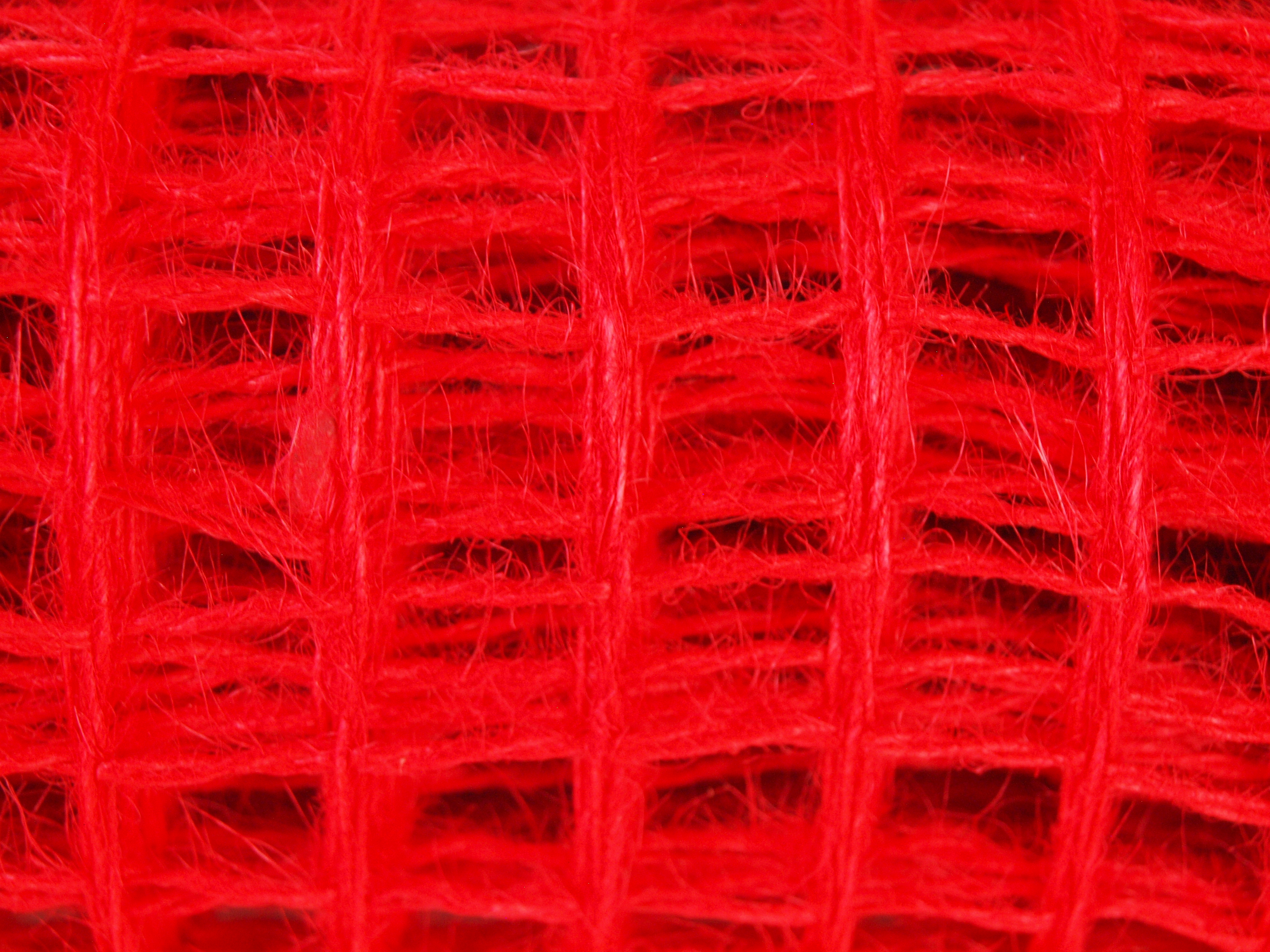 Červená juta v roli široká s většími oky pro kreativní tvoření, svatební dekorace, různé druhy květinových vazeb i k ozdobě podzimních a zimních kytic a věnců. Juta je lakovaná číst celé