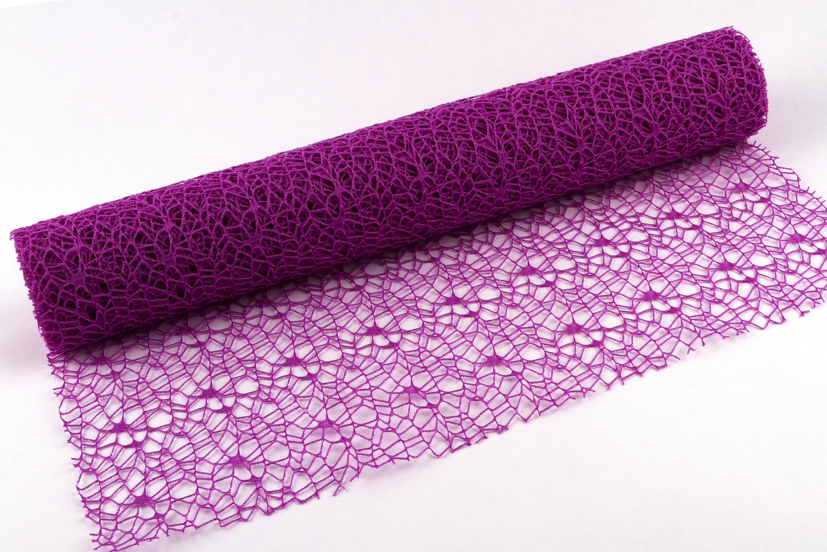 Široká dekorační role fialová big spider s nádhernou texturou hrubšího charakteru. Vhodná kombinovat se stuhou stejného materiálu, jutou i organzou. Nádherně vypadá v kyticích i jako svatební dekorace.