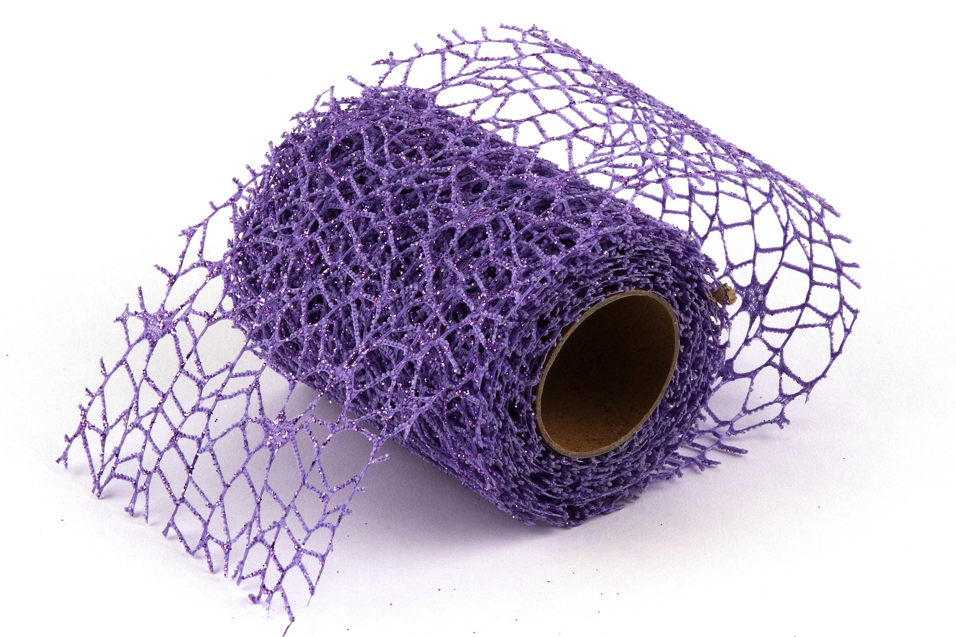 Úzká vánoční role v barvě lila big spider glitter s nádhernou texturou hrubšího charakteru a třpytem. Vhodná kombinovat se stuhou stejného materiálu, jutou i organzou. Nádherně vypadá v adventních věncích, vánočních kyticích i jako vánoční dekoracebytů a stolů.