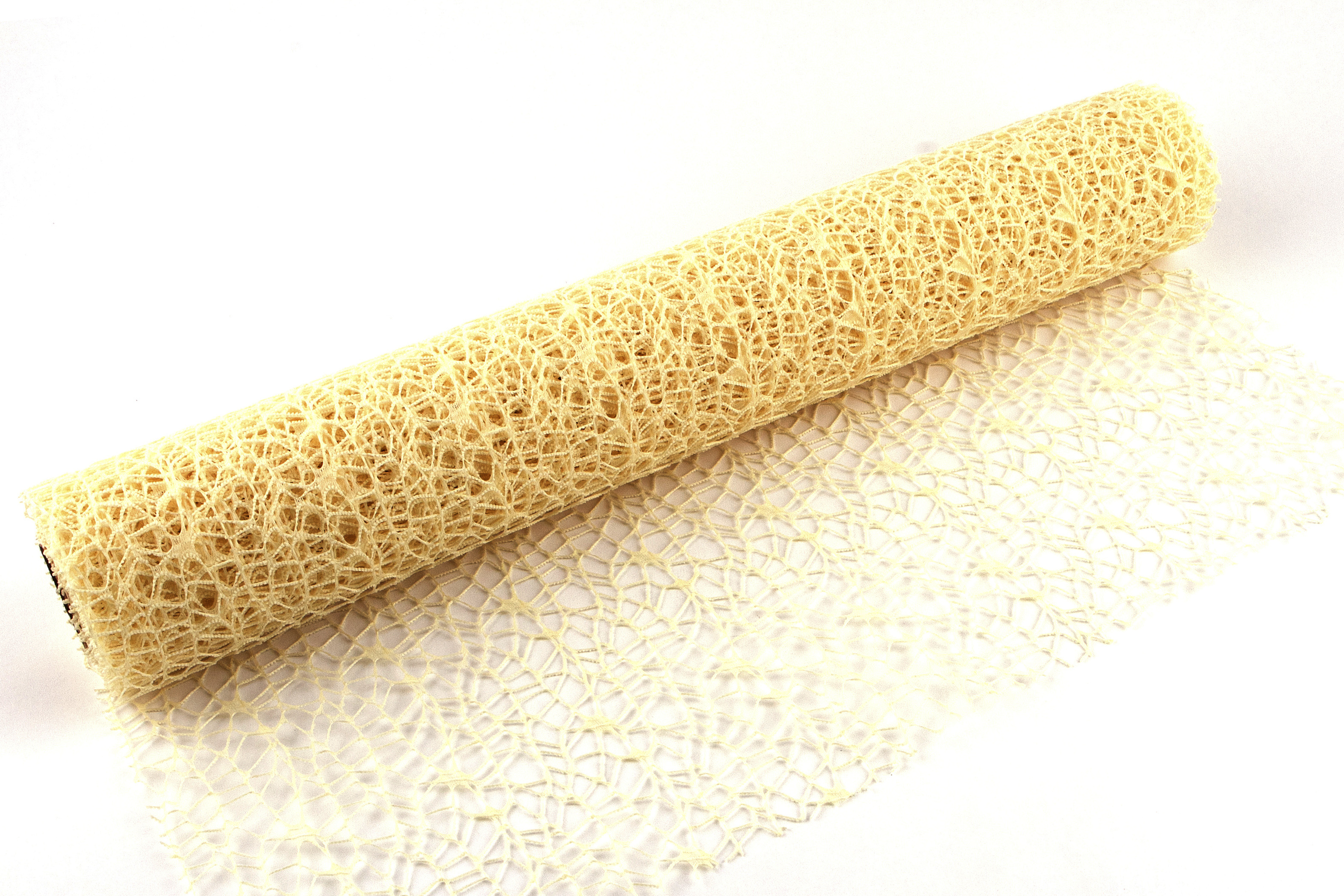Široká dekorační role v barvě champagne big spider s nádhernou texturou hrubšího charakteru. Vhodná kombinovat se stuhou stejného materiálu, jutou i organzou. Nádherně vypadá v kyticích i jako svatební dekorace.