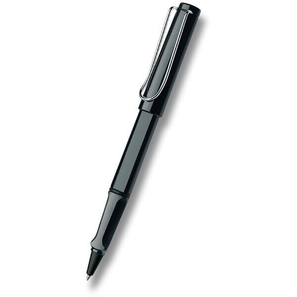 Roller Lamy Safari v provedení Shine Black má tělo z tvrzeného ABS plastu, nasazovací víčko a odpružený kovový klip. Úchopová zóna je ergonomicky upravená.
