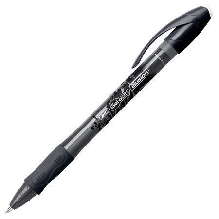 Gelové pero BIC Gel-ocity Illusion, se vyznačuje rychleschnoucím inkoustem, který nekape ani nevytéká - ideální pro leváky. K vymazání (gumování) textu dochází třením plastového konce rolleru na papíře. Nedoporučuje se pro použití na právní či kancelářské dokumenty. Extra hladké psaní Průměr kuličky: 0,7 mm Šířka stopy: 0,35 mm
