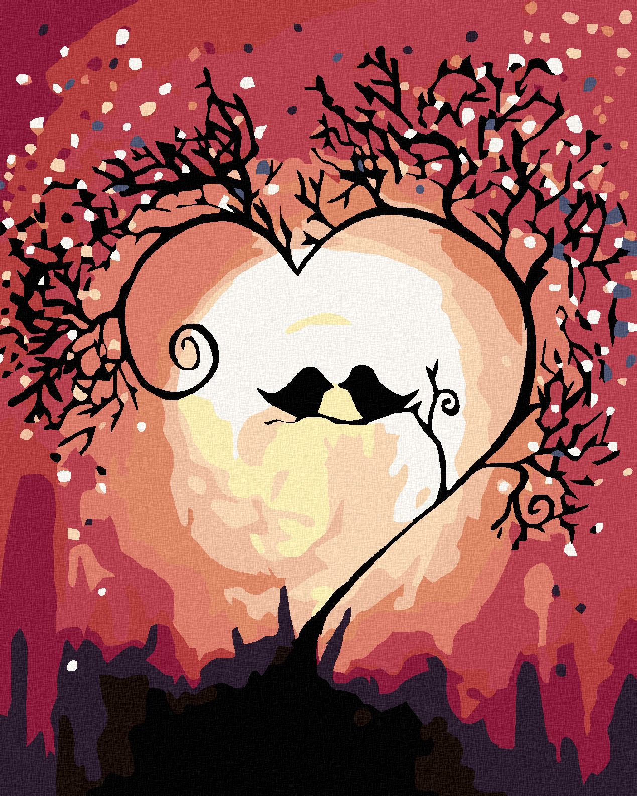 Malování podle čísel - PTÁČCI V STROMOVÉM SRDCI - 80x100 cm, vypnuté plátno na rám