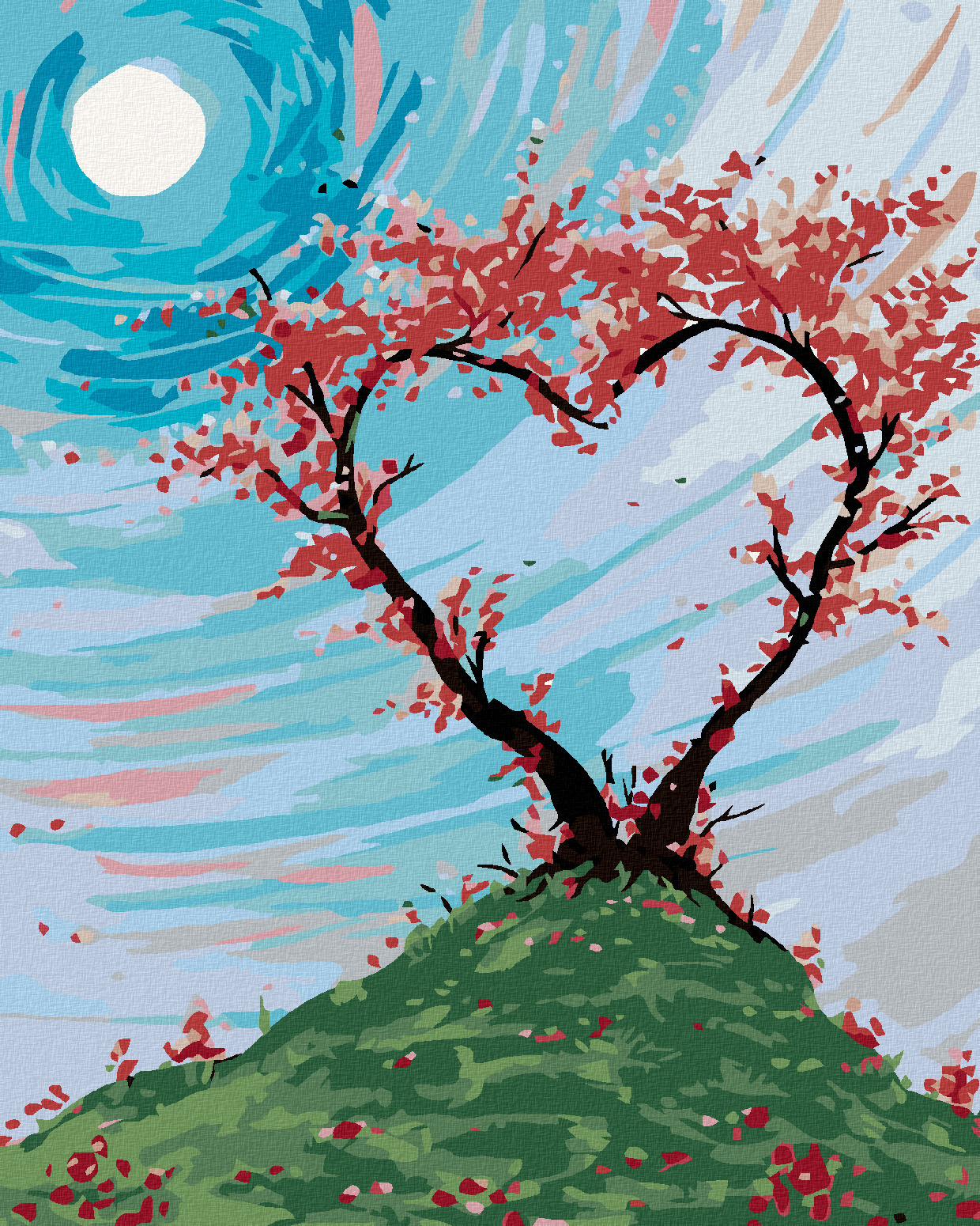 Malování podle čísel - KEŘÍK NA KOPCI VE TVARU SRDCE - 80x100 cm, bez rámu a bez vypnutí plátna