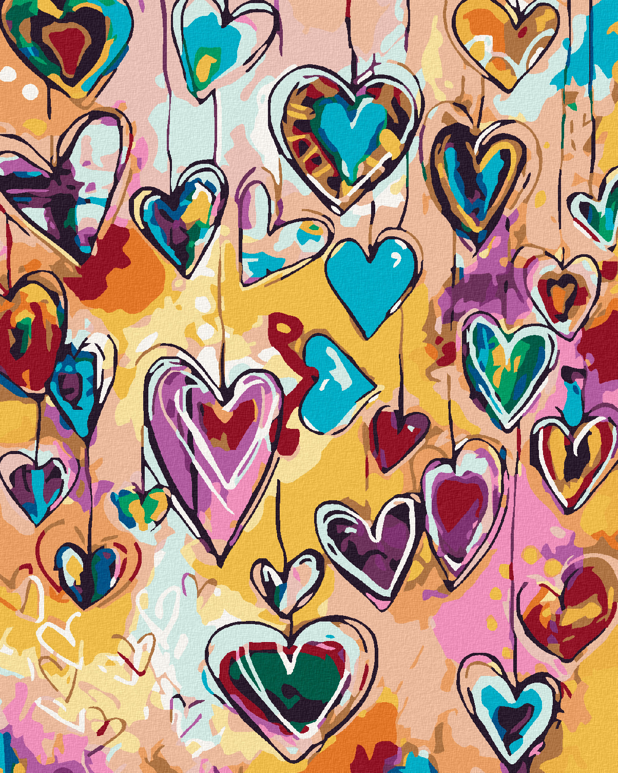 Malování podle čísel - BAREVNÁ SRDÍČKA - 80x100 cm, bez rámu a bez vypnutí plátna