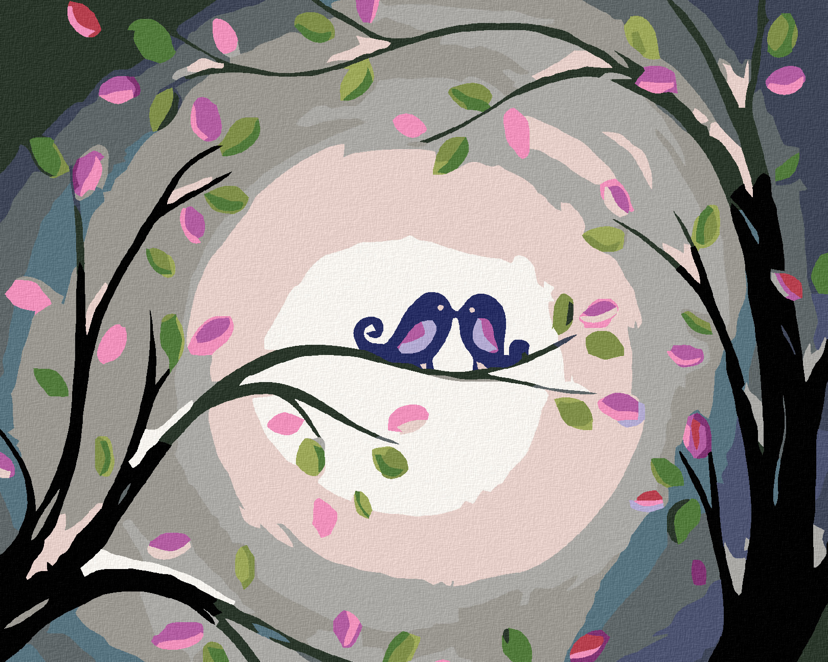 Malování podle čísel - ZAMILOVANÍ PTÁČCI - 80x100 cm, vypnuté plátno na rám