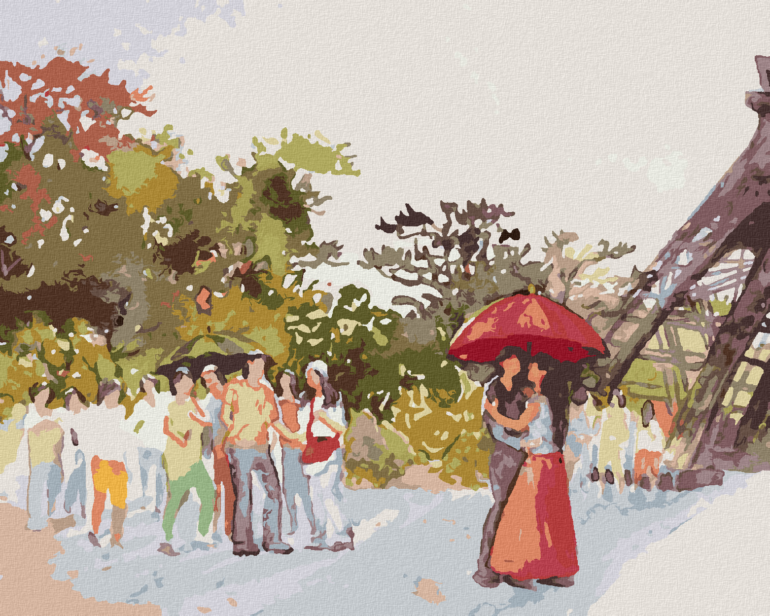 Malování podle čísel - EIFFELOVA VĚŽ A ZAMILOVANÍ LIDÉ - 40x50 cm, vypnuté plátno na rám