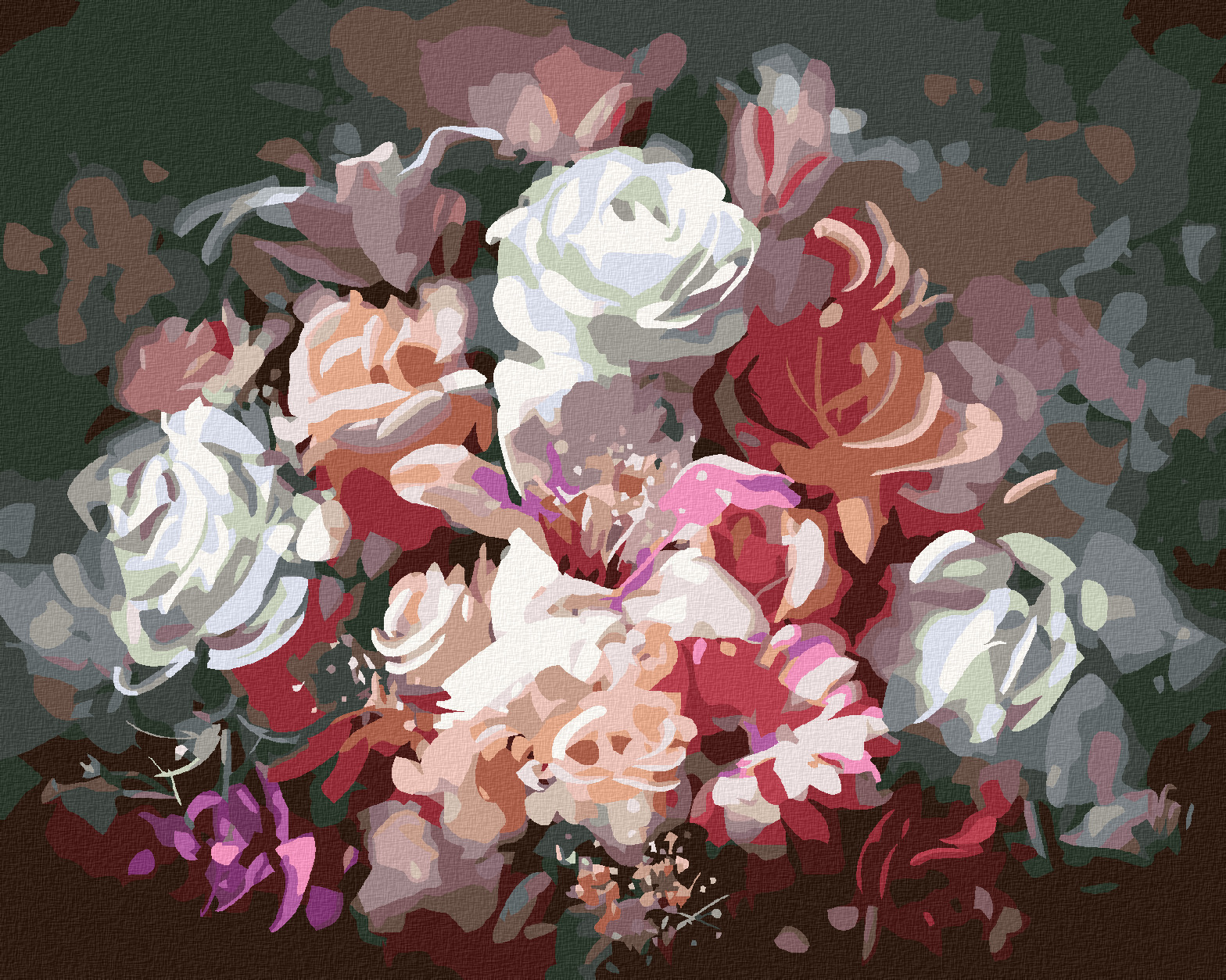 Malování podle čísel - MIX BAREVNÝCH KVĚTIN - 80x100 cm, bez rámu a bez vypnutí plátna