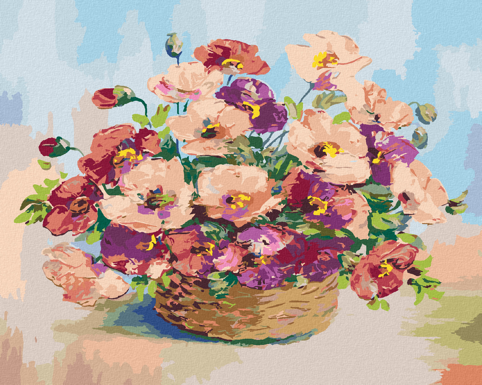 Malování podle čísel - PROUTĚNÝ KOŠÍK VLČÍHO MÁKU - 40x50 cm, vypnuté plátno na rám