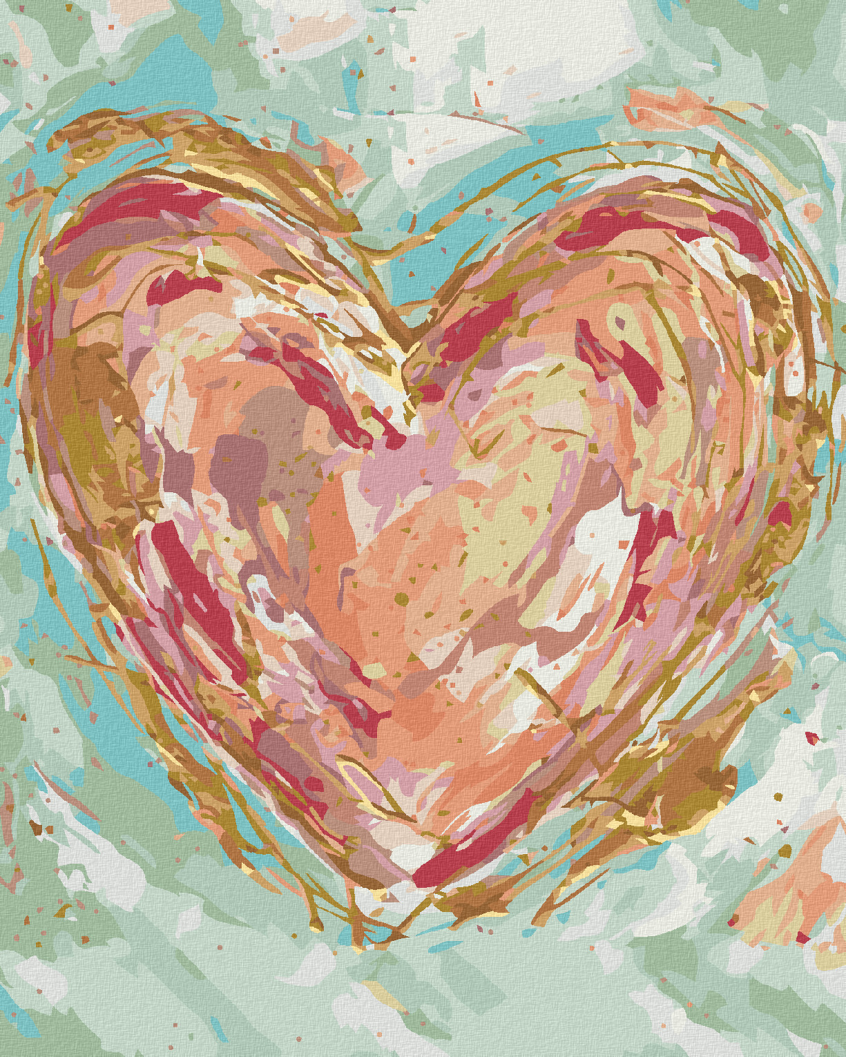 Malování podle čísel - ČERVENÉ SRDCE NA ZELENÉM POZADÍ (HALEY BUSH) - 40x50 cm, bez rámu a bez vypnutí plátna