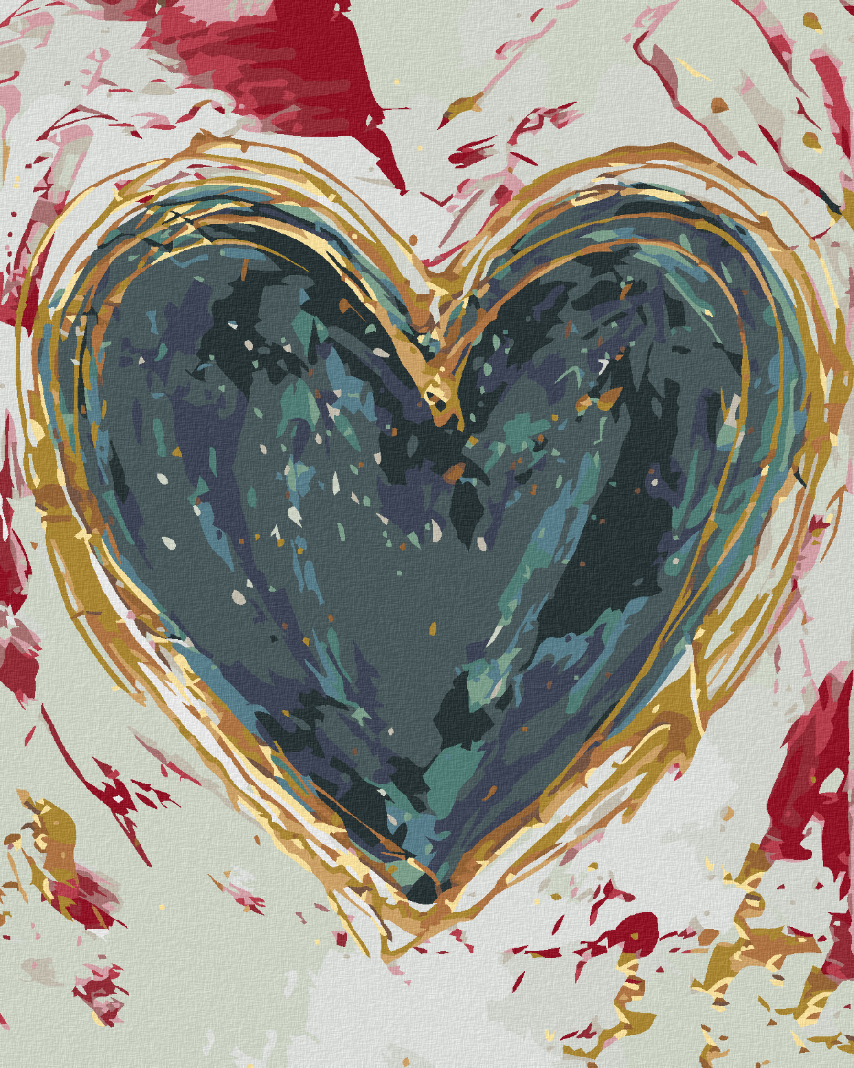 Malování podle čísel - ZELENÉ SRDCE NA BAREVNÉM POZADÍ (HALEY BUSH) - 80x100 cm, vypnuté plátno na rám