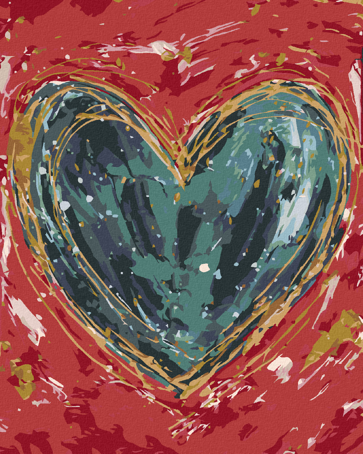 Malování podle čísel - ZELENÉ SRDCE NA ČERVENÉM POZADÍ II (HALEY BUSH) - 80x100 cm, bez rámu a bez vypnutí plátna