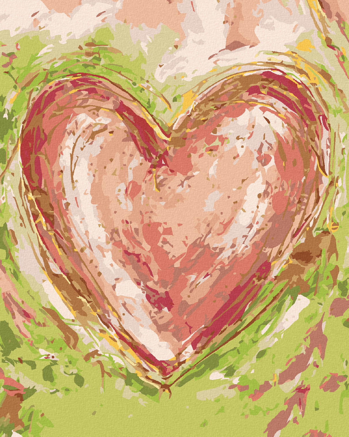 Malování podle čísel - ČERVENÉ SRDCE NA ZELENÉM POZADÍ III (HALEY BUSH) - 80x100 cm, bez rámu a bez vypnutí plátna