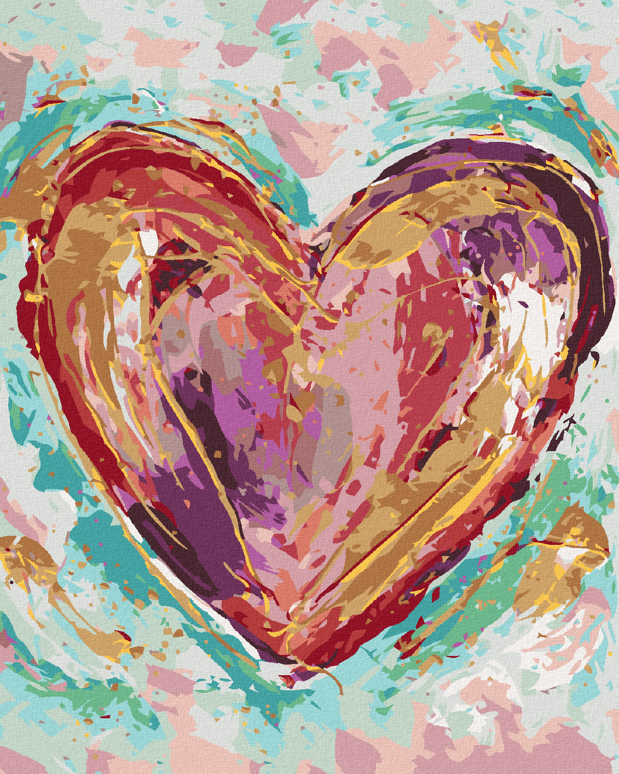 Malování podle čísel - BAREVNÉ SRDCE NA ZELENÉM POZADÍ II (HALEY BUSH) - 40x50 cm, vypnuté plátno na rám