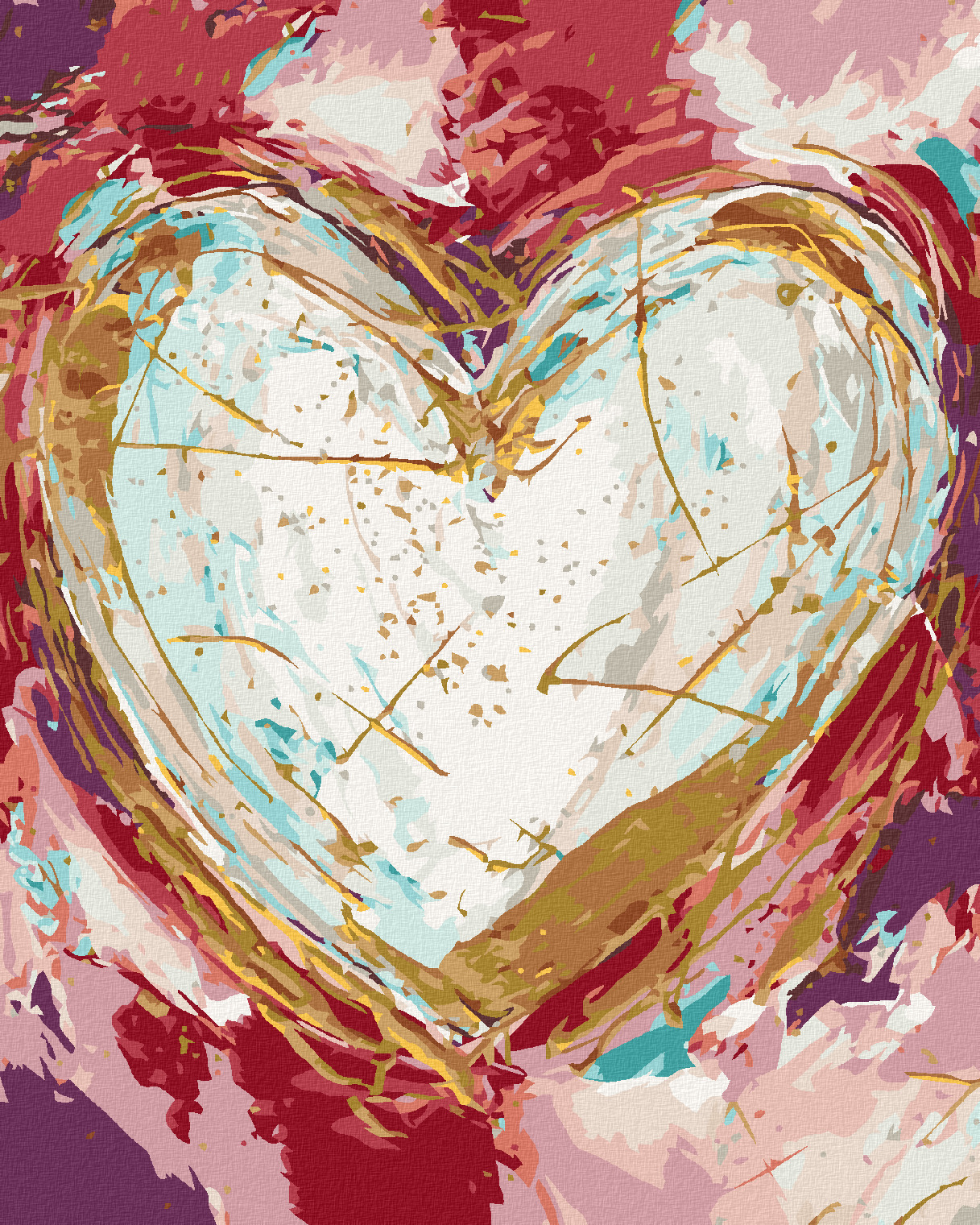 Malování podle čísel - BÍLÉ SRDCE NA BAREVNÉM POZADÍ (HALEY BUSH) - 80x100 cm, bez rámu a bez vypnutí plátna