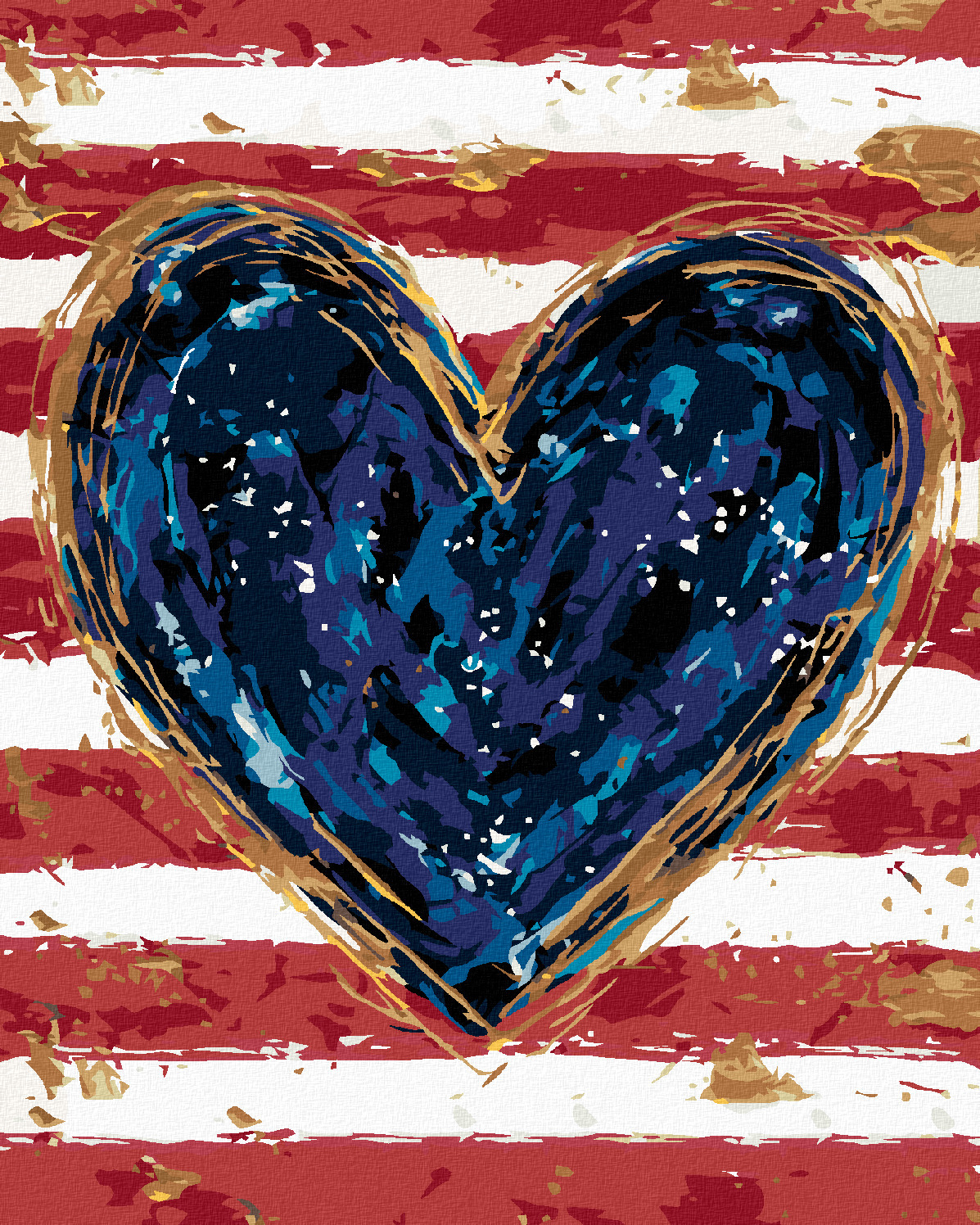 Malování podle čísel - MODRÉ SRDCE S ČERVENÝMI PRUHY (HALEY BUSH) - 80x100 cm, bez rámu a bez vypnutí plátna