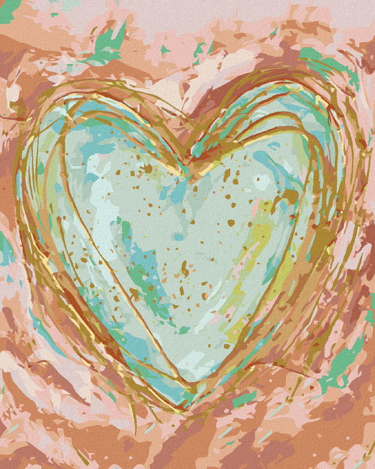Malování podle čísel - ZELENÉ SRDCE NA RŮŽOVÉM POZADÍ (HALEY BUSH) - 40x50 cm, vypnuté plátno na rám