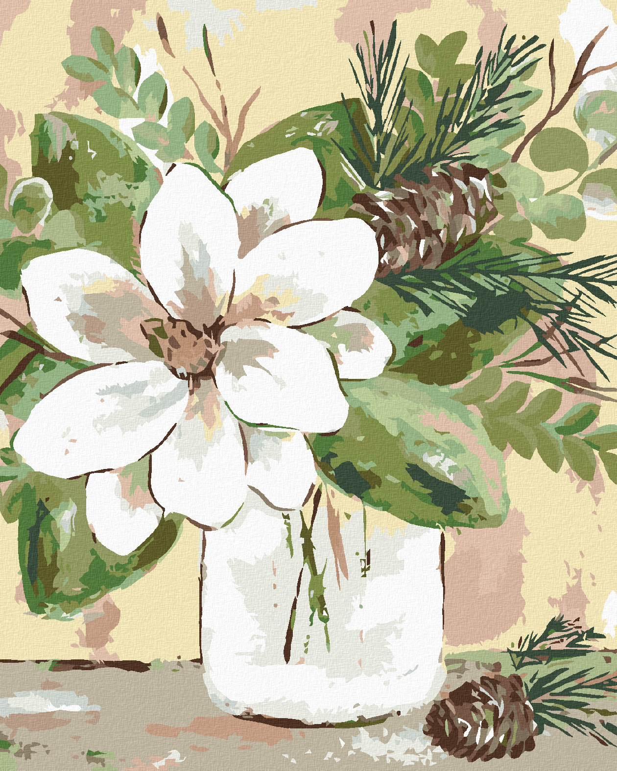 Malování podle čísel - ZIMNÍ MAGNÓLIE VE SKLENICI (HALEY BUSH) - 40x50 cm, bez rámu a bez vypnutí plátna