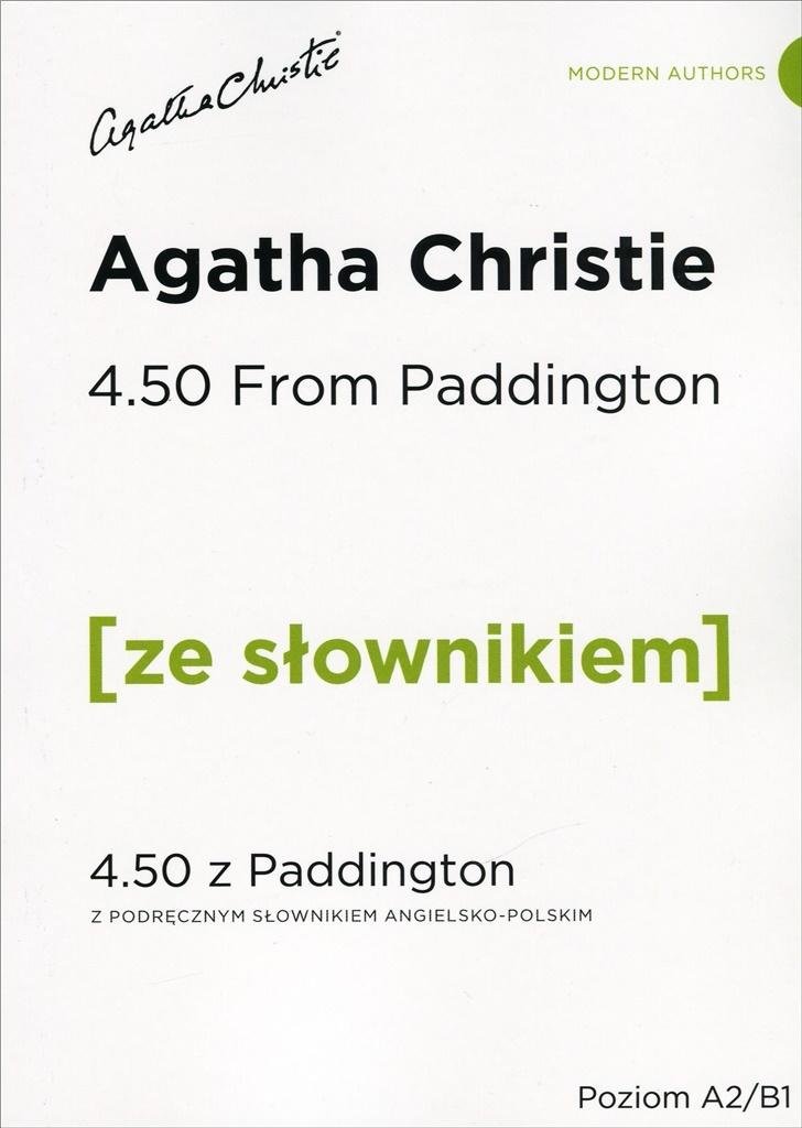 Co robić, gdy jest się świadkiem morderstwa, ale nawet policja nie potrafi znaleźć ciała ofiary? Zlecić rozwiązanie tej zagadki niezawodnej pannie Marple Powieść kryminalna 4.50 z Paddington, wydana w 1957 roku, należy do prawdziwej klasyki tego gatunku. Agata Christie tym razem w roli detektywa amatora obsadziła niepozorną staruszkę, która postanawia wszcząć własne śledztwo i dowiedzieć się, kto stoi nie tylko za tajemniczą zbrodnią w pociągu, ale też za kolejnymi, do których dochodzi w domu państwa Crackenthorpe'ów. Panna Marple dzięki przyjaciółce, Lucy Evesbarrow, zdobywa informacje, wyciąga kolejne wnioski i ponownie udowadnia, że jej zdolność dedukcji w niczym nie ustępuje tej, którą szczyci się inny bohater książek Agaty Christie Herkules Poirot. Fani twórczości angielskiej autorki zdecydowanie powinni sięgnąć po ten tytuł. Historia to naprawdę... nietypowa.