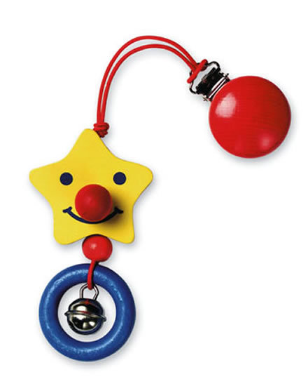 Dřevěná hvězdička s kroužkem a rolničkou na klipu. První dřevěná hračka našich nejmenších, která podporuje motoriku a pozorovací schopnosti. Barvy jsou testované a nezávadné. číst celé