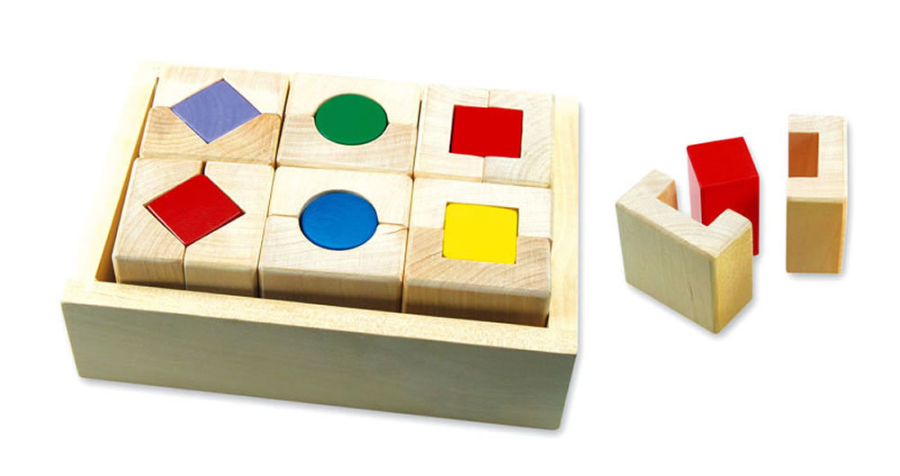 Kostičky v praktické dřevěné krabičce, učí rozeznávat tvary, barvy a rozdílné velikosti jednotlivých dílů. Bez ostrých hran! Rozměry: 17,5x13x6 cm