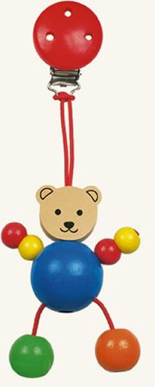 Dřevěný klip s hračkou pro zavěšení do kočárku nebo do postýlky, zaujme tvarem a veselými barvami. Z prvotřídního materiálu. Na čištění hračky stačí vlhký hadřík. Délka: 20 cm číst celé