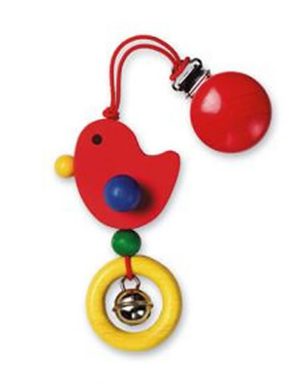 Dřevěná kachnička s kroužkem a rolničkou na klipu. První dřevěná hračka našich nejmenších, která podporuje motoriku a pozorovací schopnosti. Barvy jsou testované a nezávadné. číst celé