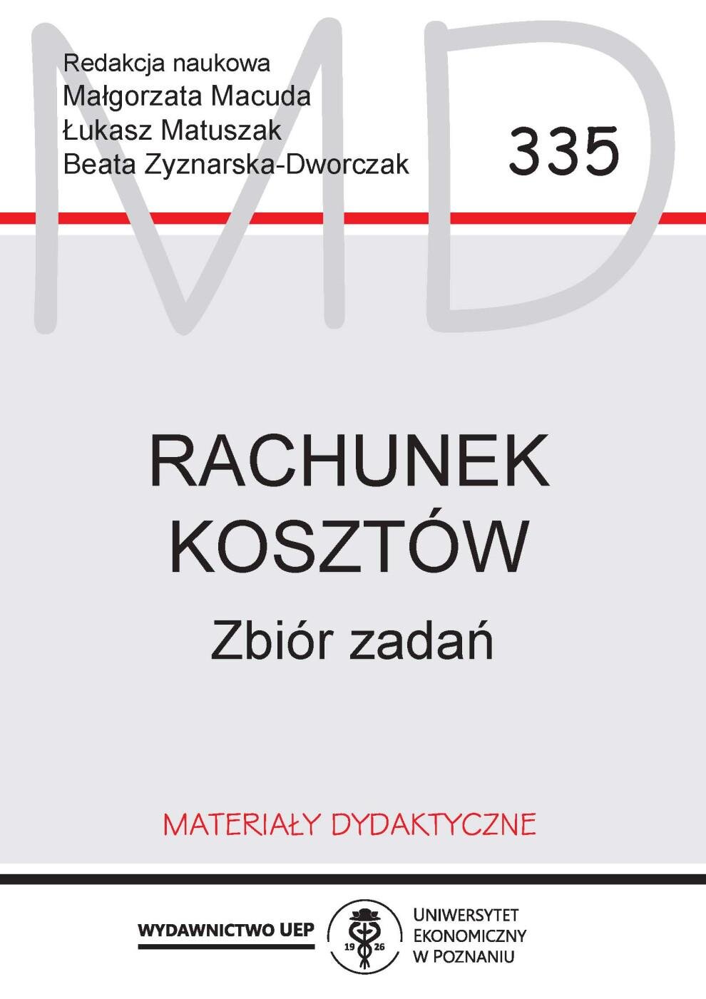 Rachunek kosztów. Zbiór zadań Publikacja Rachunek kosztów. Zbiór zadań została opracowana przez pracowników Katedry Rachunkowości Uniwersytetu Ekonomicznego w Poznaniu dla studentów studiów dziennych, wieczorowych i zaocznych jako materiał pomocniczy do przedmiotów Rachunkowość zarządcza,...