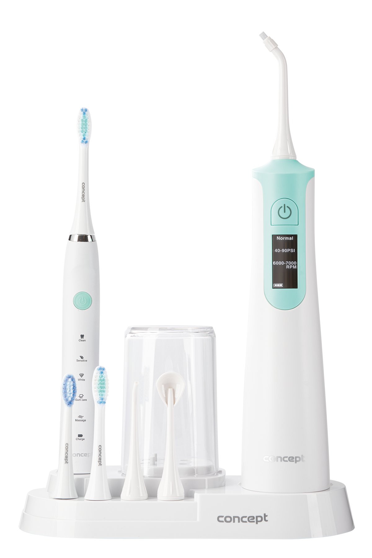 Chcete si každý den užívat krásného úsměvu, mít zdravé, bílé zuby a svěží dech? Dentální centrum Concept ZK4030 zajistí komplexní péči o zuby a dásně. Díky kombinaci sonického zubního kartáčku a přístroje pro čištění mezizubních prostor budete mít vše, co ke své každodenní ústní hygieně potřebujete. Pravidelným používáním předejdete tvorbě parodontózy a snížíte zarudnutí a krvácení z dásní. Vyniká kvalitním zpracováním a moderním designem. Model ZK4030 je vybavený Li-Ion baterií, kterou můžete kdykoliv dobít pomocí indukční nabíječky.