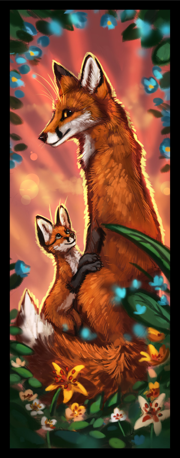 Tato sběratelská záložka představuje dravce z říše zvířat v překvapivě jemné a něžné podobě, připomínající spíše plyšáky než divoké šelmy. Na ilustraci se rozzáří lišky ukryté na kouzelné mýtince plné barevných květin a třpytivých hvězdiček. Scéna zachycuje teplý západ slunce a malou liščí rodinu, kde mládě netrpělivě tahá svou matku za kožich a žádá ji o pohádku na dobrou noc, plnou dovádění a mazaných kousků. Díky této záložce si tak do svého čtení můžete přinést útulnou a hravou atmosféru plnou pohádkového dobrodružství.