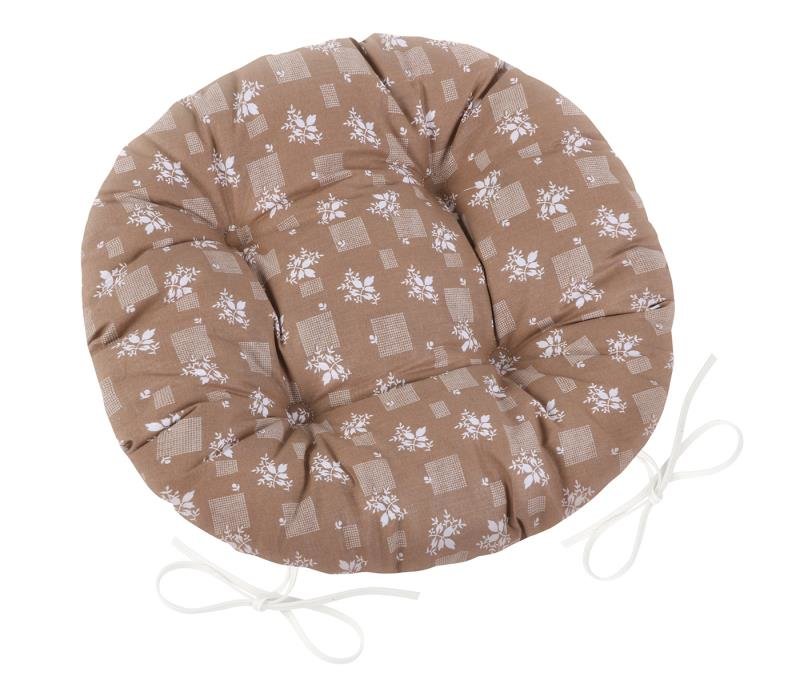 Sedák Adéla prošívaný kulatý - hnědý kvítek - průměr 40 cm