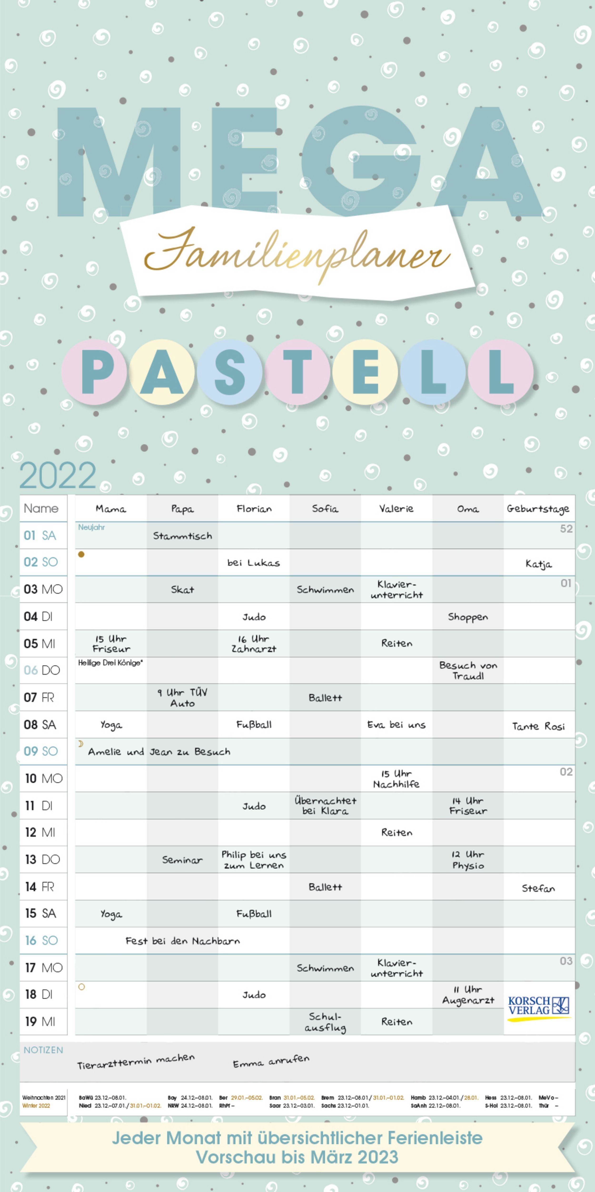 Mega Familienplaner Pastell 2022 (německy)