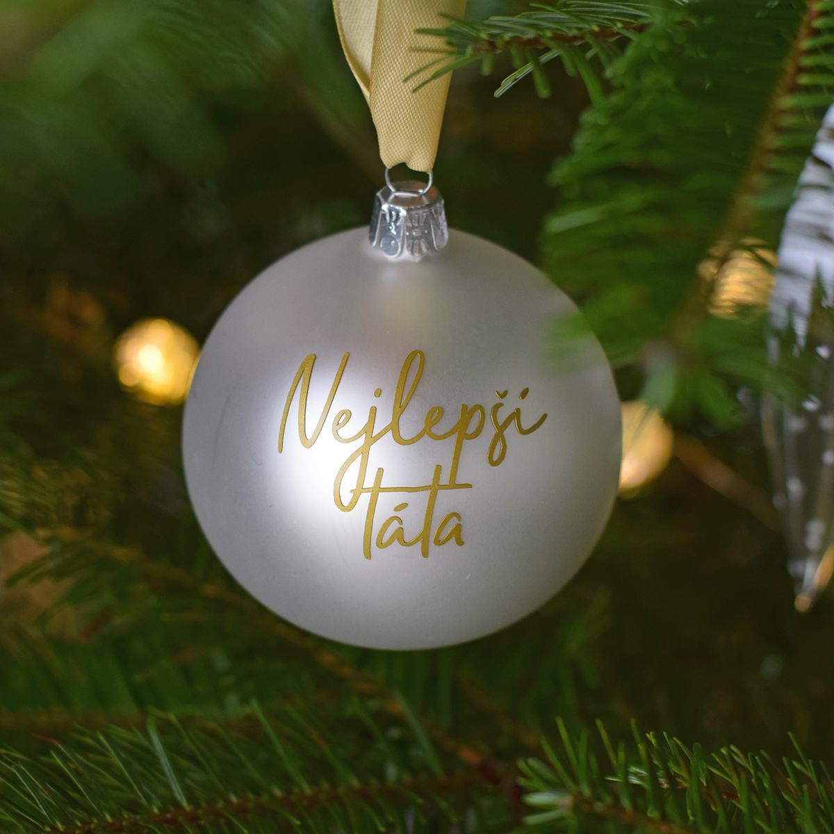 Skleněná baňka - Nejlepší táta (bílá) - skladem, lehce poškozený kus