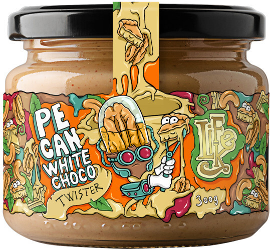 Twister Pecan white chocolate je kombinace krémových kešu ořechů s neodolatelnými pekany. Navíc je celý mix zjemněný kvalitní bílou čokoládou a provoněný špetkou skořice.Krém byl inspirován pekanovým koláčem, který je považován za velkou specialitu.