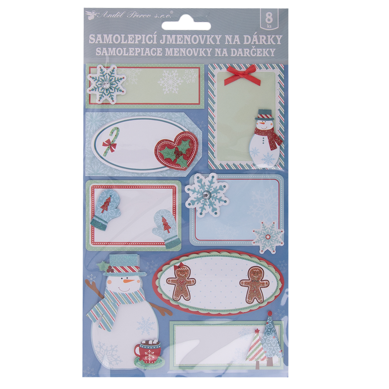 Jmenovka na vánoční dárky 3D glitr 8 ks 14x21 cm